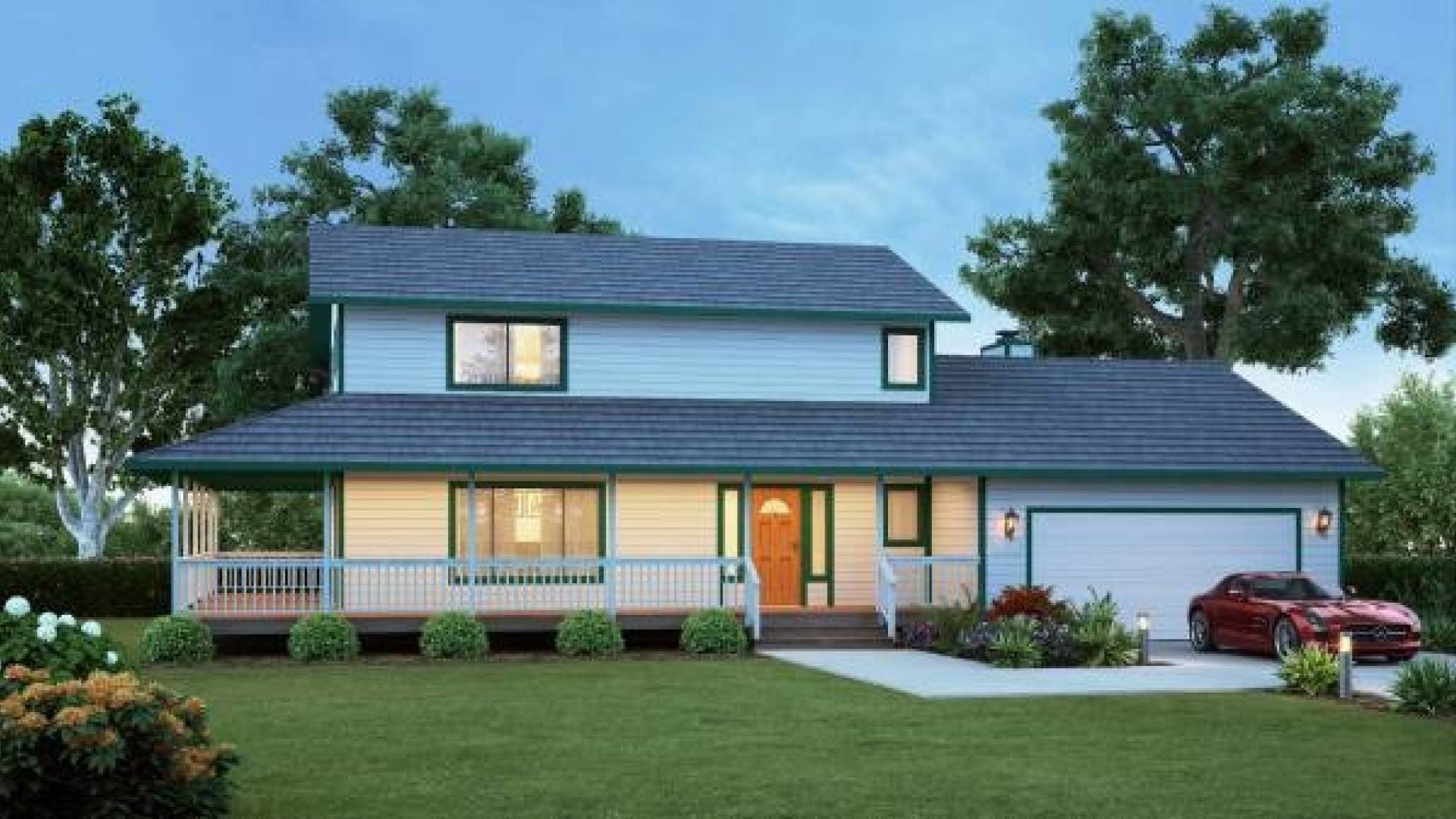 The Woodbridge panelized kit home offers space and flexibility. This home has a huge wrap-around porch that provides space for outdoor leisure activities and also protects the first floor windows from direct sun, a problem with most two-story plans. The large family room, with fireplace and adjoining eating nook, provide a convenient informal entertainment option in contrast to the more formal living and dining rooms.