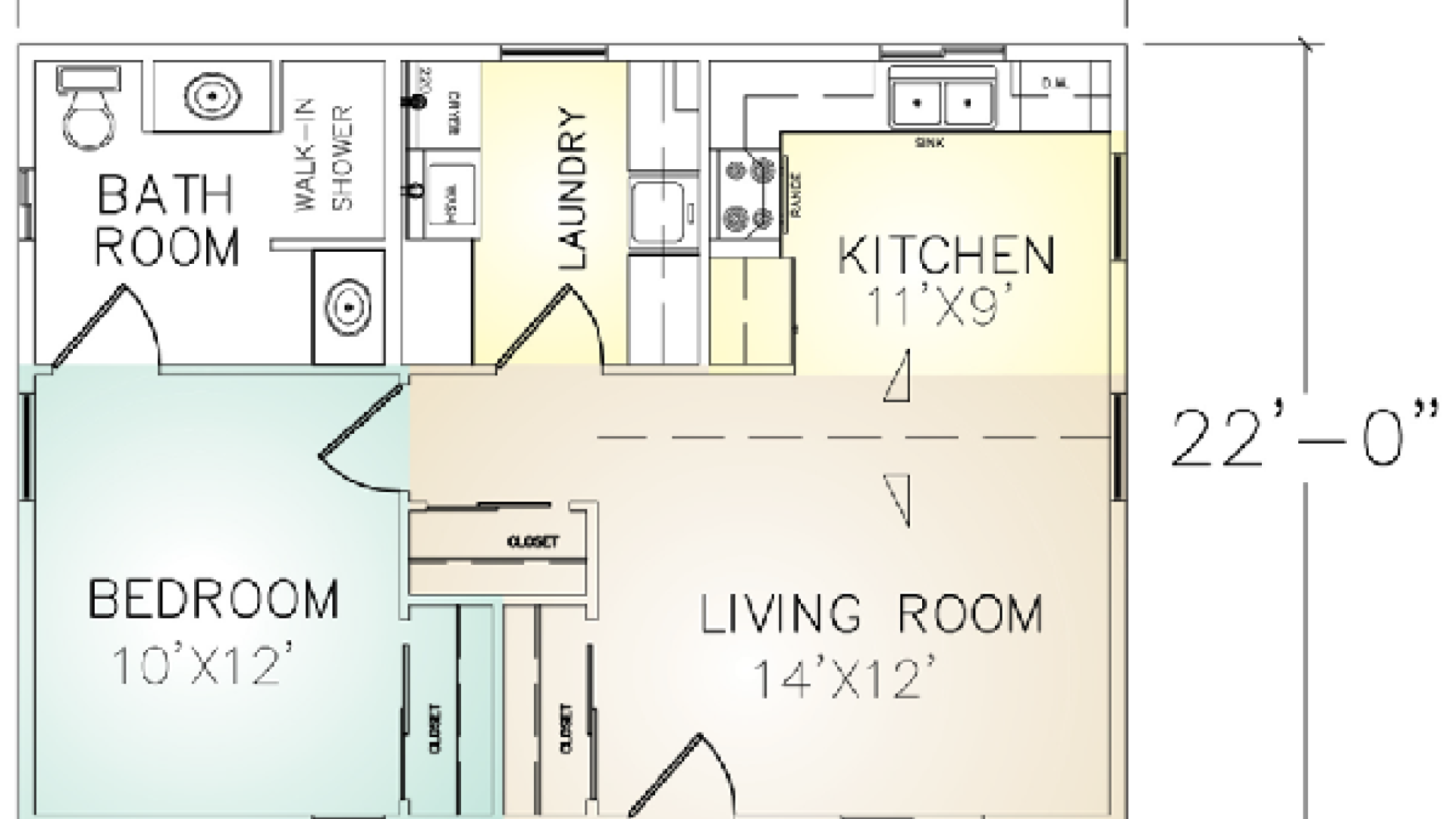 Sonoma keeps life simple at 682 sq ft and still gives you the good stuff. You get a welcoming living and dining area with vaulted ceilings, a full kitchen, and a spacious bathroom with two sinks and a comfortable walk in shower. Other favorites include an expansive laundry with a wash tub, ample storage, and a utility closet. On an existing property, Sonoma works as an ADU granny flat or granny pod for family housing, a home office, a backyard retreat, or rental income where allowed.
