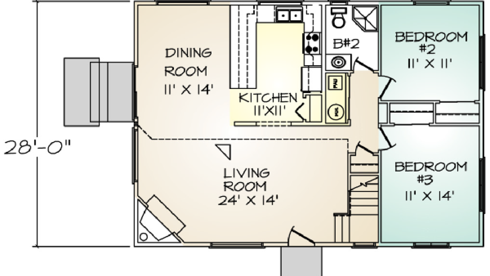 Yes. Many owners extend the entry or add a wrap or rear deck; posts, beams, and footing details are adjusted in the drawings.